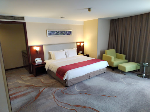 Read moreThis has now firmly established itself as "my" Hefei hotel. Prices are good and service, facilities etc are top rate. I visited twice in 17 days, both times booking an executive room. ||||Sirocco restaurant on the 2nd floor offers a good western breakfast always and in the evenings for 138 yuan a head there is an all you can eat and all the beer (bottled) you can drink buffet. This buffet is heaven for shellfish lovers - there are many types on offer and at intervals a "cowboy" comes around offering various barbecued meats. Any trencherman would not be disappointed. ||||The rooms are excellent and offer every toiletry you could need, including probably the best hotel disposable razors I have ever encountered. ||||My only gripe concerns the executive lounge. I pay extra not because i need a bigger room but for the inclusive breakfast and complimentary drinks in the early evening. The range of drinks is limited to whisky, bourbon, vodka, cognac and Kahlua (who the hell drinks that??) and yet my tipple is gin. They have none, which for me is disappointing, I rarely have chance to have a G&T in China. ||||The complimentary snacks, amazingly, comprise a selection of biscuits. That's it. Sometimes if you are not that hungry, in a good executive lounge you can dine purely on snacks such as chicken wings, pasta bolognese etc but not here. ||||If Holiday Inn's GM sorts out the executive lounge drink selection and lays on some actual food the place would be paradise. It remains however, "my"...