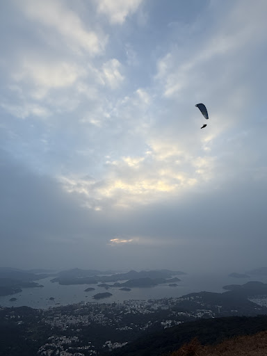 there you can enjoy a magnificent view overlooking Sharp Peak, High Island Reservoir, Yim Tin Tsai, Sai Kung, Pak Sha Wan (Hebe Haven) and High Junk Peak. there's a piece of rock on where people stand for photo shooting and guts testing. occasionally you'll see paragliders too.