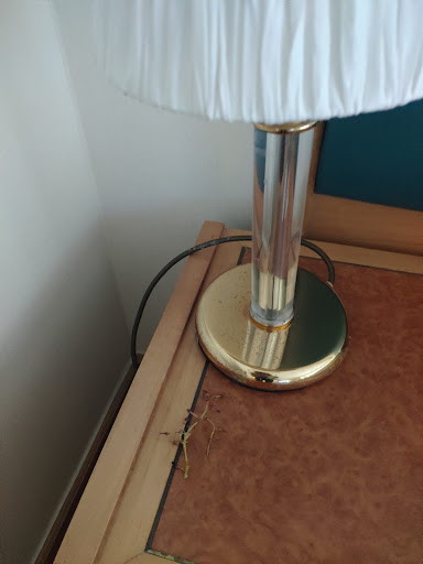 Cons: -- The room smelled. It would seem that the carpets had some sort of moldy smell to them, but it could have also been the curtain. The smell made you think twice about walking on the carpet with your bare feet. -- The bathroom has no power outlets to use for your hair dryer, curling iron, shaver, cordless toothbrush, etc... If you want to use these items, you need to go to the foot of the bed, next to the TV, and plug in to the desk/vanity which is inconvenient. -- Speaking of power, the only place that you will find power outlets is at the vanity. If you use a CPAP machine, use your computer or phone while charging, etc.., you have to run the cables across the room and they may not reach, depending on what your requirements are. I used power strips which added 3 feet and then plugged into those. Seriously, no power next to the bed?!?! -- The shower curtain was moldy and smelled up the bathroom shower. This could have been easily rectified by complaining, but the hotel's quality control should have taken care of this before we checked in. -- This is both a pro and a con, but I've listed it in the con section because of the lack of logic involved with the setup. Half the lights can be turned off or on from the comfort of the bed (at the night stand). The other half are on the other side of the bed (at the night stand). The con is that you have to go from one night stand to the other to turn off all of the lights. The pro is that you can turn the lights on and off from your bed.