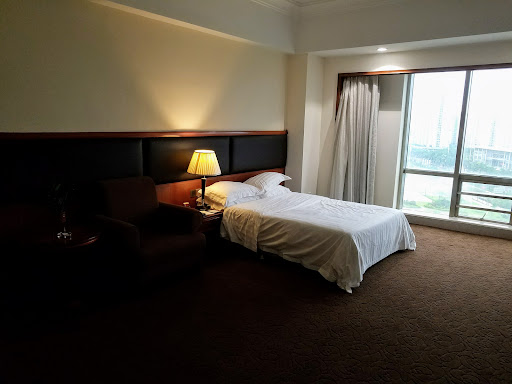 Gladden Hotel in Jiangmen (名冠金凯悅酒店)is located on Fazhan Blvd “Development Road” (發展大道), Pengjiang District (蓬江區) in Jiangmen City (江门市), Guangdong Province (广東省). The hotel is close to all amenities. Landmarks such as the Jiangmen Wuyi Museum of Overseas Chinese, Jiangmen Art Museum, Bagua Mountain Park, Wuyi overseas Chinese Plaza are less than 0.5 km distance; the Jiangmen Science and Technology Museum, the Jiangmen Upside-Down Museum, the Jiangmenshilian Museum are all with 1 km distance from the hotel. Within the hotel, there are both an indoor and outdoor swimming pools, sauna, spa, fitness room. Public parking is free, with available car charging facilities. Pick-up shuttle from the airport is available (50 km away). Wi-Fi is free. There is also a restaurant, cafe, within the hotel. The rooms are big and clean. Services were good, the front desk staff provided very...