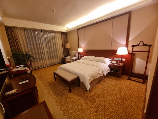 Read moreWe were worried when we got in the taxi at the airport and the driver said, "Why do you want to go there? There are lots of better hotels in the city center. That place is all messed up." Well it turns out he was referring to the traffic in the area, which is bad for the time being because they are building a subway. ||||The hotel itself is really lovely, quiet and secluded, and the garden is large, well kept and beautiful. It was a great place for an evening walk, with azaleas, bougainvillea and bamboo artfully interspersed with ponds and Chinese pavilions. Our room was large and well-lit with two full beds with feather pillows. Overall it was very clean, though there were some stains on the carpet. The hotel is generally very quiet, though we did hear some muffled voices from the next room. ||||The service was very good, and the staff was very helpful in getting us a cab at 5 AM for an early flight out (this despite the warning from our first driver that there would be no cabs available at that hour). They also made us some delicious boxed breakfasts to take with us since we would miss the regular breakfast. ||||A couple of small things were less-than-ideal: (1) the smoke detector on the ceiling had a mini strobe light that flashed every few minutes - not noticeable when the lights were on, but in the middle of the night when you're still suffering from jet lag, it was annoying. (2) We had the dinner buffet since we did not feel like venturing out of the secluded comfort of the compound, and it was disappointing. While there was a nice variety, the serving dishes were not well heated and most of the food was lukewarm. We were very worried about possible food contamination - buffets are always a risk - but we were fine and did not have any gastrointestinal issues.||||This hotel has an interesting aspect. It's not so much a tourist hotel as a conference facility and seems to be used frequently by the local Communist Party for various functions. So if you want to rub elbows with some real CCP apparatchiks this...