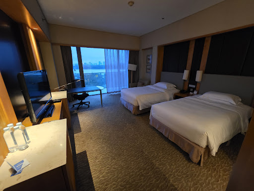 Read morePros : - The main advantage of this hotel is the location near the river. It is very peaceful and the view is great. - Bedroom is OK and well equiped- The balcony with a view on the river is perfect at night. It would have been good to have a chair or something on the balcony... - Breakfast is good but not as good as other Hilton hotels i stayed in China. Cons : - Furniture and equipment are dated. A refresh of the hotel is urgently needed. - Air condition was not working. We put air-con at 20 degrees and it was much more hot inside the room than outside, even if it was more than 25 outside !- Check-in took half and hour ! Hotel did a mistake and prepared 2 rooms for us, while we only booked 1 room. We had to get help from a Chinese friend to do the check-in. This is not acceptable for an international hotel. I chose this hotel because it is close to my relatives house, but it is far from Hilton standards. I will not come to this hotel anymore until a refresh is done. I prefer to stay in a better hotel and take taxi everyday. The price is similar to others hotels in Nanjing (Shangri-La, Hilton Nanjing...) that are...
