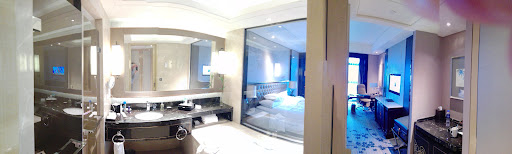 The rooms in the Wanda Realm are very nice with all the expected amenities you would expect. My favorite feature of this hotel is the play room in the restaurant area. If you want to eat a meal, but your kid won't sit still, you can let him/her play in the kids area, which has a fun ball area, a little carousel, and numerous slides. And you can get a table where you can watch the area without difficulty. They also have a couple of sand box tables for the kids and my son spent about an hour at it. The only downside at the hotel was the room temperature. Even though maintenance came out to look at the thermostat, we were never able to get the AC to work. Our room temperature was stuck at 25 degrees celsius. Some of the other rooms were even hotter. Other than that, it is a nice place to stay in Nanjing. Note that it is in "the suburbs" rather than near the...