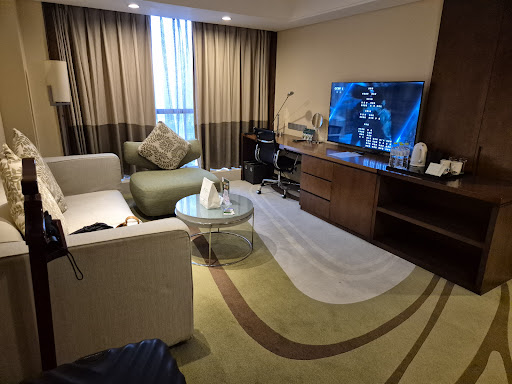 Overall a good hotel. Clean and mostly excellent staff. Often very difficult to get a taxi as the main entrance is on a bit of a side street. I am reviewing my last 2 stays in this review as the problems I had we're similar on both stays. The last time we stayed was not during a public holiday period. We booked the club floor as we wanted to be able to use the Premier lounge for breakfast and the happy hour. On checking in we were told that the lounge wasn't open for breakfast because there weren't enough customers to warrant opening it for breakfast. So we would have to use the restaurant like everyone else. I asked how they could charge me extra for services I wouldn't be getting? Eventually I was begrudgingly given a VERY slight reduction in my room rate 'because the happy hour is still on' briefly happy hour consists of a whiskey, a rum, a gin, a red and white wine. And some very,very luke warm fried -from -frozen convenience food - onion rings, chips etc. one type of cold meat, one type of cheese. Fruit salad. Fried rice, you get the idea. Fast forward to this trip during the October 1st national holiday. We stayed in a premier floor room again, except this time it was one that had a connecting door # a family room #except it sounded as though the other family next door were in the room with us. A note on travel and ALL Chinese hotels - don't go expecting a rest. Chinese folk use the corridors all hours of the day and night to hold long heated conversations, yelling at the top of their lungs. The thought is, if we're up EVERYBODY is up. And the louder and more often you can slam your door the better, especially if your neighbours from your hometown can hear the noise 'cos they will realise you are rich because you're staying n a hotel. This of course is not the fault of the hotel management. Anyway back to the business lounge this trip. The staff are delightful that work there. The breakfast is meagre and again luke warm food. On the last day my wife and I ordered an omelette after 40 minutes of apologies and no omelette we had to check out hungry. We were told amazingly when we arrived for breakfast to expect a Very long delay for food because of the national holiday, the restaurant was busy etc etc etc. so why were we paying more for less service? - bizarre reasoning. And one last point on the happy hour this visit, food still convenience food, left standing at luke warm temperatures but this time the soft drinks/mixer drinks fridge is LOCKED so you must ask every time you want anything to drink. The staff make a huge display of unlocking the fridge for you etc. so NOT a happy hour, just a begrudging hour. No more, I think I'll try another hotel, this isn't he way to treat...