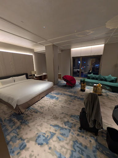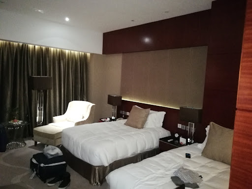 Read moreDas Hotel liegt nur ein paar kurze Fahrminuten vom Flughafen der Stadt Jinjiang entfernet. Es wirkt auf den ersten Blick wie eine Oase in der tristen Gegend in der es gebaut wurde. Allerdings holt einen die Realität schnell wieder ein, wenn man auf das Personal trifft, welches wenn überhaupt, nur ein sehr sehr schlechtes Englisch spricht und schon gar nicht versteht.||||Die Aufzüge sind ein weiterer Makel, entweder sind Sie ausser Betrieb, bleiben stecken oder halten während der Fahrt nach oben plötzlich an und man rutscht ruckartig ein paar Centimeter wieder runter und setzt dann ganz normal seine Fahrt fort... dies alles ist mir und meinen Kollegen in den letzten Monaten in verschiedenen Aufzügen des Hotels wiederholt passiert.||||Die Zimmer sind komfortabel eingerichtet und besitzen neben einer Dusche auch eine Badewanne, die durch eine bewegliche Wand plötzlich Mitten im Zimmer zwischen Bett und Toilette steht und aus der man sogar Fernsehen gucken kann, sofern das TV-Gerät funktioniert und man der chinesischen Sprache mächtig ist. In Sachen Sauberkeit wird es hier scheinbar nicht ganz so genau genommen, denn zahlreiche Fliegen scheinen hier ihren Hauptwohnsitz zu haben und auch für die Toilette empfehle ich die Mitnahme von Sagrotan.||||Ausserdem ist die Lärmkulisse gerade in der Nacht unerträglich. Auf der einen Seite des Hotels dröhnt die halbe Nacht Musik aus einem Nachtclub bis in die oberen Etagen, auf der anderen Seite nervt der endlose Verkehr auf der Hauptstrasse vor dem Hotel, der gerade in der Nacht immer wieder durch Hupen auf sich aufmerksam macht - deshalb Ohrenstöpsel nicht vergessen. Die einzigen Zimmer, die etwas ruhiger sind, sind die mit Blick auf den Swimmingpool, doch diese sind beliebt und schwer zu bekommen.||||Beim Frühstück zeichnet sich in Sachen Personal das gleiche traurige Bild ab, wie beim Check-in: Es versteht einen hier keiner, es sei denn man spricht fliessend chinesisch. Die einzigen englischen Wörter, die das Frühstückspersonal beherrscht sind "Coffee" und "Orange Juice", wenn man 'exotisches', wie ein Glas "Water" verlangt wird man so lange fragend angeschaut, bis man aus purer Verzweifelung endlich Coffe oder Orange Juice sagt und die Bedienung endlich loszischt. Die Auswahl am Buffett ist jedoch ganz okay, aber stark...