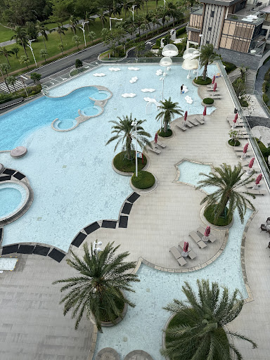Read moreОтель был заключительным в поездке по Хайнань, в расчете на детские активности и новизну отеля, выбирали по обзору известного по Хайнаню блогера о вау-отеле, за которым будущее 😅😂, картинкам (видео) и отзывам на разных ресурсах…ну что сказать, купились 😂…начну все же с плюсов: 1) действительно хорошие для Хайнань завтраки/ужины, фрукты, даже дуриан периодически 😅, прекрасная выпечка (сладости в виде пирожных, тортиков от массовых манго до тирамису), на ужинах - утка, рыба, курица, барашек, морепродукты, 2) для детей разнообразие вариантов досуга, со своими нюансами (об этом позже), но паровозик бесплатный, есть небольшой кинотеатр 5D, открытая игровая площадка (закрыта от солнца местонахождением), небольшой аквапарк, 3) уборка номеров своевременная, но, как и по всему острову поверхностная, но в целом чисто, полотенца, халаты меняют, 4) на балконе - большая ванна, это здорово, 5) вода в нормальном количестве, по приезду - тарелка фруктов, минибар с чипсами /напитками безалкогольными бесплатно, 6) сервис - сильно зависит от сотрудника, в основном - ненавязчивый 😂😅😂. Теперь о минусах: 1) отель, везде указано, новый или реновированный (уже и сложно понять, разная на месте инфа), но, видно, дешевые материалы использовались, в номерах очевидные следы эксплуатации, на новый не похоже, в душе сливы работают жутко громко, вообщем, как-то пошарпано, 2) логистика отеля странная - бассейн около лобби, потом через все лобби идешь к лифту в номер, с расположением туалетов вообще беда, 3) бассейны - вообще боль 🥲, основной, вероятно, концептуальный 😅😂, но условно взрослый - холодный (начало апреля что/то было не тепло вообще), основная часть которого - вероятно ноги помыть 😅😂😅, по щиколотку, народ просто гуляет там, ну как бы неприятно с точки зрения гигиены , мы один раз зашли и закрыли для себя тему бассейна 😅, а детский - по сути это по размеру 3-4 их ванны, правда хоть теплый, где все одновременно - дети мелкие и старшие , вобщем , жуть, вся вода супер хлорированная, 4) детские пространства - грязные 🥹, ни в одном из других отелей такого не было…открытая площадка еще ничего так, терпимо, поскольку это бегалки-лазалки, но вот закрытая 🤦♀️, запах там стоит специфический…внешне какая-то неубранность, при нас китайский ребенок , сорри, описался, его раздели и без трусишек даже, голенький, без носков, пошел играть дальше. На наши объяснения, почему почти сразу уходим, показали сотруднице, она побежала, но, очевидно, была послана, ребенок остался играть голышом…вобщем, даже наша доча, огромный любитель этих бассейнов с шариками и пр, ни разу даже не попросилась , 5) пляж- очередная боль…знали про лежаки и пр., но то, что это будет такой супер общественный пляж у причала , от которого гидромотоциклы, лодки и пр отправляются, прямо около этого - загончик для купания, маленький, с жуткими запахами гари от транспорта, не знали…остальное пространство - поплавать недалеко можно, но скутеры едут оч близко, небезопасно отплыть, ну и редко, но все же сирену включает спасатель…туалет - грязный, общественный, душа отельного или другого нет, ноги помыть - ванна для ног стоялой воды 🙄🤦♀️, полотенца не приносят на пляж, хотя сотрудники отеля сидят там и регулируют тему лежаков (с этим вопросом, отдельно отмечу , справляются отлично, полотенца желающих заляпать лежак и уйти на 3 час