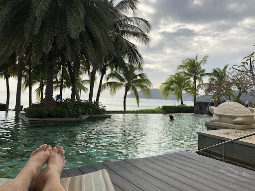 Read moreWe travelled to Mandarin Oriental Sanya for 10 days for half term. When we initially booked the hotel, we thought we would miss the typhoon weather and luckily managed to get a few days of sunshine before the torrential downpour. The sun was coming out again on the day we left and we were able to get our flight home.||The kids made the most of it. Water slide was working, lots of floats for the little ones to use. The gym room was great, no pull up bars though. Games room, arts room with clay making and canvas art for the creative ones and babysitting service for smaller ones. A little slice of heaven that you call peace! Morning activities with sifu include Tai Chi, Yoga, and afternoon Kung-fu available for your well being. Don't expect to be working on your laptops when you are here.||On arrival, you have the buggy - on call, all day to transport you and your luggage to your room and any other time you require. We also met Gavin, with good communication skills when he ordered us a cab. ||What made this place exceptional was possibly the Spa experience. Special mention to Amber and Judy for the delightful aromatherapy massage. Amy, for making us feel most welcome. It was truly, an amazing ritual of relaxation. ||Breakfast was incredible, daily handmade pastries, freshly squeezed juices, Chinese cuisines of noodle soups, congees, delicious stir fry, lobster wontons, dim sum dumplings and homemade buns. Fresh fruits and salads available and off course the full English breakfast. Waking up to this every morning was no trouble at all. ||As the weather turned, the option for the Pavilion evening buffet was brought inside to the breakfast dining area. We ate here twice, once outdoor and once indoor. My partner does not enjoy eating at buffets, but the kids prefer this one for options; especially the ice cream and desserts! We would have liked to have seen some labelling on the food, but there were none on both occasion. The food is nice here, but note that, all the meat skewers and lobsters at the grill are quickly whisked away once they are cooked. So it's typical behaviour of a all you can eat buffet! Maybe we arrived the second occasion at peak time. There were only two grills going and not cooked fast enough for its audience. Whereas, when the buffet is served outdoors, there seemed to be more grills going, it's a better and nicer experience. The manager was really nice and offered us more drinks and desserts to go when we mentioned this.||The other two dining option is Fresh which is another fabulous outdoor eating experience and the Cantonese Yi Yang, where we ate the most. When the weather is bad, both menus is served in the same Yi Yang restaurant. ||Lunch option, you have the outdoor noodle place further along near the Watersport or the Sunset bar, which we also had a few cocktails in the evening. The live singing and saxophone playing was brilliant!||The staff are all very kind, helpful and they work hard. We could see a great deal of effort made to welcome our stay. It could not have been so good if it wasn't for the smooth running of the place especially made by its people. A memorable experience. Thank you Sanya Mandarin Oriental, it was an absolute pleasure to coming...