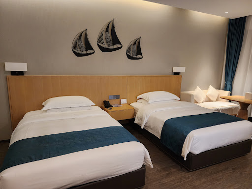 Read moreМы летели по системе фортуна от Русь Тур, изначально просмотрев все трешки на их сайте, они нам все нравились :) Прибыли в отель в 4 утра, заселили быстро, при заселении необходимо было оставить депозит - 100 долларов или евро. Неплохое расположение отеля, пять минуты до ТЦ Ананас. Очень большое лобби и сам отель...Наш номер 3042 в корпусе А, до ресепшена минуты 3. Персонал сам плохо говорит по английски, но в отеле всегда сидел гид от Русь Тура - Сергей, который всегда помогал при переводе. Порадовал бассейн на крыше отеля - один маленькие надувной, другой чуть побольше - каркасный. ||||Номер: 3042 - просторный с двумя большими кроватями. Окна выходили на зеленый парк и военную базу, в связи с чем окна были матовые. Постельное белье и полотенца были белоснежными и чистыми. Перебой с водой не было, напор неплохой. Из мебели: большие 2 кровати, два кресла со столиком, комод, стул, стол шкаф. Из техники: холодильник, фен средней мощности, чайник и телевизор на стене, который не показывает русские каналы, прибор от комаров. Вай фай ловил в номере хорошо с утра, вечером с перебоями и бесплатный, но для инстаграмма и вотсапа необходимо заранее установить VPN. Так же в номере была посуда: 2 стакана, 2 чашки. Так же были заварочные пакетики чая и две бутылки воды. Из душевых принадлежностей: две зубные щетки с зубной пастой, два мыла, две расчески плоские, шапочка для душа, в душевой кабине были дозаторы с шампунем и гелем для тела. Розеток в номере было достаточно и подходили для российских вилок. ||||Уборка: Номер чистый, убирались каждый день хорошо. Каждый день меняли чистые полотенца и спальное белье, все белое, без каких-либо пятен. Также каждый день предоставляют рулон туалетной бумаги и две маленькие бутылочки воды в холодильник. Чаевых не оставляли ||||Еда: Завтрак с 7.30 по 9.30 по талонам, которые выдали при заселении.На первый взгляд еды на завтрак было много, но была в основном национальны кухня: жаренная лапша и овощи, которые выглядели не аппетитно и не для наших желудков на утро. Но можно было найти, чем хорошо перекусить перед морем: тосты, хорошие яичницы, варенные яйца, варенная кукуруза, картошка фри, были еще сосиськи - резиновые на вкус. Из фруктов арбуз и дыня. Чай (плавало три пакетика на литров 7 воды), кофе, вода. Обедали и ужинали мы роллами в Ананасе на 4 этаже, на человека выходило от 20 - 40 юаней. ||||Расположение: до городского пляжа идти 15 минут. До Ананаса минут 5-7. Возле отеля автобусная остановка с которой можно самостоятельно добраться до всех достопримечательностей: 25 автобус - Няньшань (15 юаней), 28 автобус до пирса Остров пиратов (12 юаней), до пешеходной улице и первого рынка ночного - 2, 8, 18 автобус (2 юаня), Отель Дом деревьев - 25, 36, 53 (2 юаня). Остановки назначения можно просить писать на китайском языке гида Сергея, а обратно советую, заранее сфоткать ТЦ Ананас и показывать при посадке в...