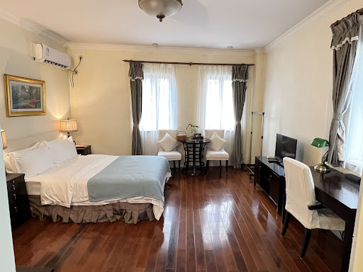 Read moreLocation is excellent, conveniently located right across the street from Jing-An Temple. It’s one block away from the subway station and surrounded by restaurants and shopping malls. This place also has a full size kitchen as well as in-room laundry, which is a plus for families. Staff here is excellent and very friendly. The hotel manager and house keeping staff are very nice and helpful. The room, however, needs a lot of work and upgrades. The walls are peeling and have lots of water damages. I didn’t see any mold but wouldn’t be surprised if it has mold. It’s definitely not up to code per US standard. Smoking is prohibited, but the hallway is filled with cigarette smoke. Sometimes when I forget to leave the AC on, I walk in and smell cigarette smoke inside the room too. Overall, I think it’s a great place to stay for a few nights to access all the attractions in this part of Shanghai. This place is meant for long term stay; however, I just don’t think it’s healthy to stay for more than just a couple of days due to the condition of...