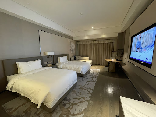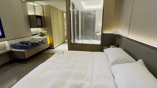 Read moreWir waren hier für zwei Wochen wegen einer Dienstreise.|Das Hotel ist insgesamt gut. Wir hatten ein Zimmer mit großem Doppelbett und Badezimmer mit Badewanne.|Es gibt die üblichen Hotelsachen: |- Wasserkocher mit Tee/Instantkaffee|- Fernseher|- Schreibtish|- WLAN und LAN!||Die Steckdosen sind für alle möglichen Stecker geeignet (Eurostecker, britische Stecker, US und die chinesischen). Auch USB Typ A ist vorhanden.||Das Frühstücksbuffet war auch in Ordnung. Es gab immer Obst und Salat sowie frische Nudelsuppe. Aber auch westliche Sachen wie Gebäck und Marmelade.|Das Internet war auch okay.|Schade war, dass das Personal kaum Englisch spricht. ||Der große Nachteil ist, dass das Hotel sehr weit vom Stadtzentrum entfernt am äußersten Rand in einem Industriegebiet liegt. Mit dem Taxi fährt man je nach Vekehr 1-2 Stunden ins Zentrum. Die nächste U-Bahn ist etwa 30 Minuten mit dem Taxi entfernt (9-10 Euro)|Auf Google Maps nicht eingezeichnet, aber das Hotel ist direkt neben einer Art Shoppingcenter. Es gibt ein paar Resturants und Geschäfte (auch eine Apotheke).|Ansonsten gibt es nicht viel zu sehen.|Die meisten Gäste sind sicherlich wie wir geschäftlich hier. Die Tesla Fabrik ist in der Nähe.||Insgesamt wird es für alle die geschäftlich hier sind ein guter Ort zum Schlafen sein. Aber es lohnt sich nicht für...