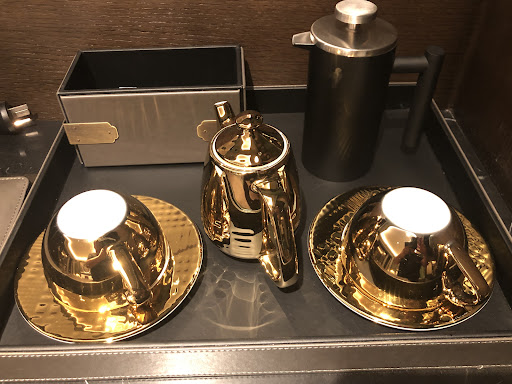 Rooms are well-apportioned and spacious. I enjoyed the included amenities from the bathroom to the closet to the coffee and tea station. Instead of a boring pod coffee machine, the hotel room includes ground coffee and a French press!