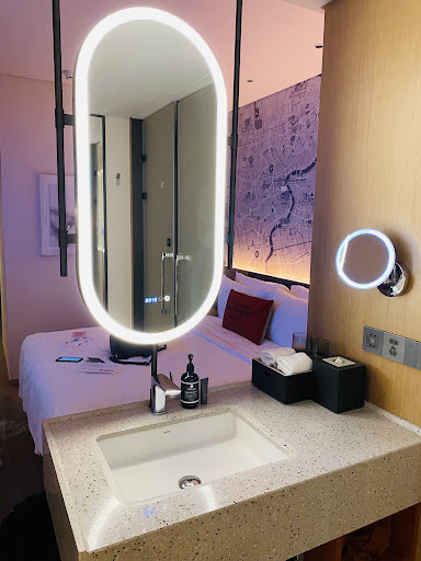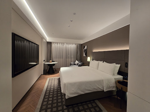 Hotel very nice, great hospitality, staff genuinely responsive. Room spacious, with sensible thematic but comfy minimalism design. I particularly like the hair blower, constant heat and never overheated; as well as the Intellight Toilet has moderate warm seat and very effective auto flush ( and pre flush) sensor, just cool. The air conditioning is good too. Felt it clean and balanced. Staff interactions was extra bonus for me; I really appreciate Tan, whom I called up when the room on the upper floor had the number not in order and I could not find, he and Nia Te patiently sort another room for me; that was near to perfect. Whilst I requested various items more, they could attend and respond quickly along with the robot helper. I thought three day work trip could be tiresome but their attentiveness and sensible suggestions cheered me up!!