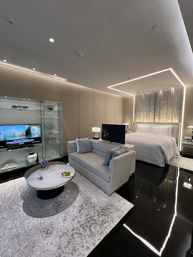 Read moreFrom the moment I stepped into J Hotel Shanghai Tower, I knew I was entering a property that aims for the very top – quite literally, as it sits in the highest hotel space in China, with views that stretch endlessly over the city and Huangpu River. My arrival, however, was not flawless. Outside the building, there was no greeting, luggage assistance, or even an opened car boot – something I would expect from a hotel of this calibre. I found myself unloading my own bags and walking in alone. That said, the moment I stepped inside, the atmosphere shifted completely. I was warmly welcomed in the 101st-floor lobby, my luggage taken, and offered coffee and water while my room was prepared. A manager personally greeted me, and I was delighted to learn that I had been upgraded to a higher category Stateroom with a river view – a thoughtful touch that set the tone for the stay.||The Stateroom was a showpiece of refined modern luxury. A glossy dark floor contrasted beautifully with cream and gold accents, while a vast bed with an exceptionally thick, comfortable mattress promised restorative sleep. A walk-in glass wardrobe, elegant marble surfaces, and discreet lighting added to the sense of understated opulence. The bathroom was a highlight: a rain shower with a marble bench, deep sculptural bathtub, and panoramic views (even if slightly distanced by the building’s double façade). This façade, while architecturally striking, creates a small gap between the room and the outer glass wall, meaning the view is not as ‘immediate’ as the marketing images might suggest. In daylight this hardly matters, but at night the tinted outer glass makes the outlook noticeably darker.||Every in-room detail felt considered – a Nespresso machine, well-stocked minibar with premium selections, high-quality amenities, and whisper-quiet climate control with perfectly diffused air. Curtains and lighting were fully electronic, and the space managed to feel both high-tech and serene.||Breakfast in the sky was a memorable experience, served in a dining room with floor-to-ceiling windows framing the river’s curves and Shanghai’s skyscrapers far below. The spread combined a refined buffet with à la carte options, featuring fresh berries, multiple nut varieties, unsweetened yoghurt, and other health-conscious items rarely found in such abundance in the region. Service was impeccable – attentive without intrusion, with staff anticipating needs before they were voiced.||The bar mirrored this sense of elevated indulgence, offering breathtaking views and an extensive drinks list. Cocktails were superbly mixed, but the snack menu was disappointingly narrow for vegetarians – an oversight that should be addressed in a property of this standard. Also, the background music before the live performance was oddly mismatched, featuring traditional Chinese spa-like melodies that drained the atmosphere. Once the live band began, however, the ambience matched the grandeur of the setting perfectly.||On my final morning, with an early departure preventing me from enjoying breakfast, the team prepared a beautifully presented takeaway box, complete with fresh pastries, fruit, warm eggs, juice, and a freshly made cappuccino – a small gesture that spoke volumes about the hotel’s service culture.||While I was unable to try the spa (closed for maintenance during my stay), my overall impression was of a property that combines spectacular design, outstanding service, and once-in-a-lifetime views. A touch more consistency at arrival and greater attention to menu inclusivity would make this...