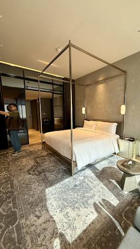 Read moreThis Kimpton hotel is really-really cool: opened in September’23, it has fresh amenities, sleek contemporary design, beautiful scenery from the upper decks and remarkable dine & drink options. The staff is friendly and helpful, with fair level of English, which is not that common even in Shanghai.Rooms have spacious bathrooms, high-tech control system and comfy bed with orthopedic (!) pillows. The surrounding areas are fresh from the reconstruction, conveying nice Singapore-style staycation feel - great choice even for those living in Shanghai.The only major area of concern was the pool.Don’t get me wrong, it’s a really beautiful rooftop pool at a scenic spot of Huangpu river, but it’s regulated by the most ridiculous rules you can possibly think of. First, there is no service by the pool, so forget about the joy of having a coffee, a cold beer or a juice at your sunbed. There’s a forced shower at the entrance which cannot be turned off - protecting your phone an belongings would require agility. And the most stupid of all - you must wear a swimming cap even if you don’t dive. There is no information of it ahead of check-in, so you can either rent a cap at the place, or enjoy the pool in observer’s mode if they’d ran out of those (happened to us).Having stayed at over 30 hotels across all China, it was the first time I met regulations like that. It’s not a sports pool, where caps and absence of service could be assumed. It’s a really nice rooftop leisure pool, beautifully furnished and with pleasant soundtrack. Well, could have been. Dear Administration, please benchmark the other hotels in town. A properly serviced rooftop pool is not just a source of joy for your guests, it’s also a revenue stream for...