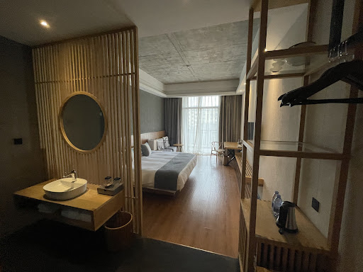 Read moreI feel like this hotel has been treated unfairly by some previous reviews. This hotel is situated about 18 miles from tourist town, so of course the staff will speak Chinese, you're in China, so have a little more patience. ||The rooms are huge and stylish, with extremely comfortable beds. The bare concrete, as mentioned by a previous reviewer, is a deliberate design choice that makes the rooms very modern.||I also noted that someone mentioned a handheld shower. If they had bothered to look up they would have noticed the huge waterfall shower above their heads that every room is equipped with.||Whilst the rooms are great, the location is not. This is not a hotel for tourists, unless the only thing youve come for is Disneyland, which the hotel provides a bus for. There is no Metro station nearby so its not easy to get to the centre of Shanghai. ||Also, if you are western and ask for a restaurant you will be directed to the smaller more expensive western restaurant onsite, but there is a cheaper, local option onsite so you can insist on going there. It is all in Mandarin though, so again just use some patience.||The rooms are amazing so if youre staying for business nearby or for Disneyland then this hotel is probably an excellent choice. If you're a tourist wanting to see the sights, then definitely look elsewhere, at least somewhere near a...