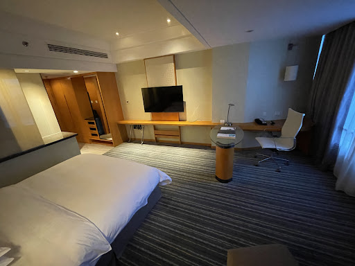 Amenities Fitness center: A well-equipped gym is available for guests. Spa and hot tub: Relaxation amenities include a hot tub, sauna, and steam rooms, along with a spa offering massages and facials. Business services: The hotel has a business center, meeting rooms, and a ballroom for events. Connectivity: Free Wi-Fi is available in rooms and public areas. In-room information: All guest rooms provide instant flight information from Pudong Airport. Pet-friendly: The hotel allows pets, though charges may apply. Rooms The hotel has 370 well-appointed guest rooms, including standard, superior, and deluxe options, with modern amenities. Apartment suites also feature a kitchenette. Some rooms include Japanese-style automated bidet toilets. Despite its proximity to the airport, rooms are well-insulated to minimize noise.