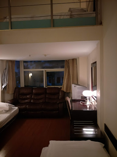 Read moreFirst time back in Shanghai since the 1990s so this place was a bit of a strange experience. ||Most of the staff have some English, which together with a pre-downloaded dictionary worked ok. ||Family room (two singles and a mezzanine with a double was quite spacious really and did the trick. ||Bathroom is old and yes, could do with a deep clean. ||Towels- not bath mat provided, just a towel per person, which made the bathroom floor a bit lethal! ||Worst thing for us was smoking rooms meant the smoke wafted into ours. Walls are very thin and you can hear conversations. We had Americans on one side and Chinese on the other so it was interesting to listen to their conversation. Very glad there was no romance going on because would have felt creepy listening to that! ||Very close to Caoyang Road station, easy to get to. For $55 AUD a night for four bed room, cannot complain. ||We had no problems with the room key or getting wifi...