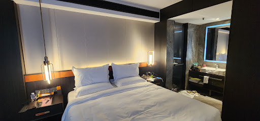 Read moreWe loved this hotel! They upgraded us and were so efficient at check in. I was shocked by how good the view was and we had a bathtub in the room too, the room was very spacious. Great service, whatever we asked for they had someone bring within 5 minutes. There’s a robot to deliver take out that is quick too. Cleanliness was good, cleaning aunties were lovely. They had a lot of amenities provided like sleep mask etc and a bathtub bag that was replaced daily. Near the lifts you can grab extra combs, toothbrushes etc if you needed it, so that was convenient. Bed was very comfortable, loved the pillows. Block out curtains did a good job and I didn’t hear any sounds- overall great sleep. Such an amazing location near the bund w a fantastic river view, I would stay here again in a heart beat. Also they always have 2 doormen at any time who helped to carry the luggage up the stairs and bring to the room etc. Even very late at night they’re there which does help to make the lobby security feel...