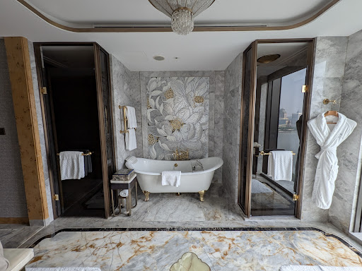Read moreOverall a lovely experience, very luxurious. The check-in process was particularly notable—it didn’t feel like many hotels where you stand at a counter to check in, instead your luggage is taken to a counter and you’re seated in armchair while the concierge checked you in. A nice touch! The rooms are extremely spacious, with even the fairly basic room I booked having a seating and dining area. Everything in the room (curtains, lights, AC) is controlled via an iPad, which also felt very nice. The bed was comfy, view of the Bund was stunning both at night and during the day, and the bed was comfy. The added amenities like a Nespresso machine, selection of Chinese teas, and bath salts for the huge circular bathtub were all greatly appreciated. The breakfast had a good variety of Chinese (especially Shanghainese) and western options, mostly on-par with other 5-star hotels in China. Not bad but nothing to make it stand out. My complaints are few, but worth mentioning: 1.) the AC in the room just wasn’t that effective. Even though the weather is cooling down in Shanghai, the room seemed stuffy. I cranked it all the way down to 15 C but still woke up too warm. 2.) I left my room in the evening briefly to grab some takeaway I had ordered and when I returned there was a staff member in my room!! He was placing a plate of fruit on the table (which id lovely and not the reason I’m complaining). I was quite startled and said “hello” in Chinese and looked a bit shocked but he didn’t say a word or apologize and just ran out while staring at me. Perhaps he only speaks Chinese, saw I was a foreigner and thought I couldn’t speak Chinese…not sure. It was definitely a...
