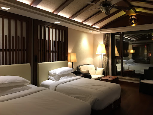 Read moreThis is an excellent hotel and you won't be disappointed if you choose to stay at the Hilton Sanqingshan. However, we gave it a 4 rating because of several small details that added up to one too many inconveniences for a first class hotel. First, we really appreciated the upgrade to a very spacious room, nicely furnished, clean room overlooking the river. The things that disappointed us included the very meager selection and poor preparation of food at the happy hour, the air conditioning that could not be adjusted for speed (the fan was always on high) or temperature (regardless of what setting we chose, it always seemed to be set at 20 degrees C), and the small supply and poor location of electric outlets. The Internet didn't work in the evening. The surrounding town is very strange. There are lots of half-built or empty buildings and very few restaurants. There were no early evening strollers -- either local or tourists. The people who were out in the evening seemed to be made up of locals sitting around or touts. The arduous Sanqingshan mountain walk is absolutely spectacular and we recommend taking it in full. We were the first up the gondola on a gorgeous sunny morning and barely made it back by sunset which came early as black clouds and rain rolled in at the end of the day. Sanqingshan is a must-see for anyone who loves mountain...
