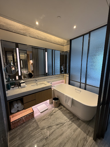 Read moreThe hotel is located near SZ University and connects directly with metro. Together with good taxi/DiDi service the location is convenient for many parts of Shenzhen - which is a very large city. The hotel occupies the top floors (32F? to 48 F) of a building with the bottom part containing offices. There is absolutely no problem with the offices and people working there as they have separate entrances and elevators. Due to the location on top floors, the views from rooms and other places are great. Next to the hotel there are some convenience stores( like 7/11), simple restaurants, coffee shops. The High Tech Park district with many upscale shops, cafes, restaurants is close - 20 min walking distance or two metro stops. The rooms are large and very comfortable, very quiet despite being located at a very busy street! Beds are good providing just enough support, and bathrooms are splendid. There is good Wi-Fi and convenient electric outlets, even a few buil-in USB ports. A covered swimming pool on the top (48 F) is great, quite large for serious lap swimming, and the gym next to it seems to be well appointed. There are two functioning restaurants (the third - Japanese was closed). Both offer good food, the buffet breakfast on 46 F offers many options though is somewhat oriented towards Chinese food but there is a good choice of Western food as well. The Chinese restaurant on 47F is exquisite - one of the best I tried in many years of travel in China. Besides food and amenities, the staff is fantastic - everybody tries to be helpful. Though a few speak English (some excellent) we all have translators now. Overall, a...
