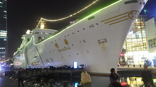 Read moreHaving spent three days in Futian Qu District of Shenzhen we decided to get closer to the Shekou Ferry Terminal to return to HongKong international airport. We booked the Cruise in on line based on its close location to the ferry terminal and star rating.||When we arrived at Sea World Square, which is a pedestrian mall, we were looking for a normal hotel building and it took us a while to realise that the Cruise Hotel is actually a large ship and the rooms are modern cabins. We were made most comfortable by the reception staff, who spoke perfect English and were eager to help. The ship is located in a large pool area, surrounded by modern chinese and western restaurants, shops and walkways. The ship has its own micro brewery on board and we tasted their brew. At night the whole area came alive with people, lights and a spectacular water fountain show every half hour.On checking out the staff arranged for transport and portered our bags to the taxi.Would highly recommend this hotel ,keep in mind that the rooms are cabins not...