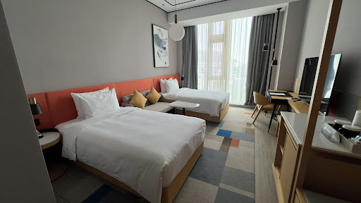 Read moreI would book this hotel again! An airport hotel in acceptable layout and condition. Closeness to the airport plays a major role within all criteria. If you have stayed at a couple of Garden Inns or Hamptons in the USA you will definitely prefer the Garden Inn at Shenzhen Airport. The twin bed room for 500 CNY incl. tax is ok, in my view. All is very clean and relatively modern. Room size is moderate, i.e., large enough. The room hasnât got a separate bathroom: instead, the bassin is in the main room just at the entrance door, whilst toilet and shower are sitting in 2 separate cubicles. A desk, in-room-locker, fridge, coffee machine, large TV, wardrobe, everything is there. Air condition is strong, well adjustable and works quietly. Wireless works stably, and worth to mention lights are outstanding and bright. Door dead bolt is strong and appears trustworthy. Staff even at the front desk donât speak English (as experienced so often in China), but they are well versed in using a translator app. Definitely, staff are attentive, customer oriented and supportive. Views from the breakfast restaurant on 20th floor are stunning! You will oversee the whole airport. Breakfast is ok, though I had much better ones in China. Look around, and you will find all you need. There are at least 5 convenience stores and almost 10 restaurants in the closest neighbourhood. Though, restaurants are very much basic; nothing to invite customers to. The environment appears safe at any time. In case my review is of any help to you, please...