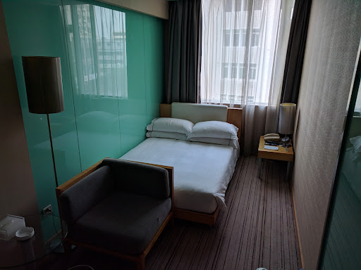 Read moreYou can reach this hotel through Exit G of Laojie Station, which is convenient. You have to pass 2 crossings. But every night when I was back and tired, I still wished the hotel could be nearer to the MTR exit. ||||There is a 24 hour open bakery on 1/F. But to be honest, I don't think the bread there is tasty. A dumpling restaurant is located on 2/F of the hotel,but I did not try it. ||||The room is very spacial and has all of the necessary facilities. It is clean too. ||||The bathroom is large as well. There are fake flowers set in the corner, which makes the room look very artistic. The water is very hot. You will feel comfortable to have a hot shower. ||||The disavantage is that the corridor is quite narrow.Some guests were talking loudly in the corridor. I remember on the 1st night when I stayed there, my neighbour turned on the TV at 4-5am and made it loud!!! It woke me up!!! And some guests returned very late after shopping and chatted loudly as well. I could even hear clearly their conversation about what they bought. I think it is better for the hotel to improve its...