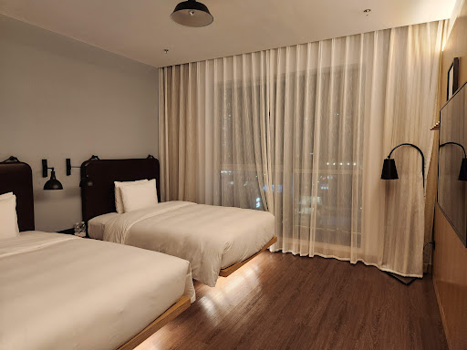 Read moreThe Moxy Shenzhen North delivers a fantastic, modern experience with a distinct cyberpunk edge. The atmosphere is electric and stylish, perfectly blending industrial design with neon-lit, futuristic vibes. This theme extends from the social lobby right into the compact, tech-savvy rooms. The check-in process is notably smooth, and a major perk is their very cool standard policy of an afternoon checkout, which adds tremendous value and convenience.Its greatest strength is the unbeatable location, directly integrated with the Shenzhen North Railway Station, making travel effortless. The surrounding area is lively and vibrant. However, while the bar is a great social hub, the food and drink offerings are just so-so. Ultimately, it's the perfect crash pad for stylish travelers who prioritize design, location, and a seamless stay over extensive culinary...