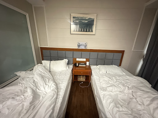 五福旅行社搭配的住宿 洗澡水沒有很乾淨,馬桶水沖完也是黃的 洗臉盆水壓特別大,ㄧ開就濺開四方 但毛巾很乾淨、白、厚,毛也很立 拖鞋也蠻厚