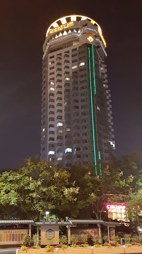 Hotel with fairly anonymous decor and lobby||Room quite spacious and clean apart from the carpet that acts as a dirt collector, there is a desk, 2 chairs and a mini bar.||Unfortunately there is space to place only one suitcase.||Quite spacious and comfortable bed||TV with channels almost exclusively in Chinese as in almost all hotels in China||Hotel WIFI almost unusable without a VPN but this is common to all hotels in China||Sufficient room lighting||Clean and renovated bathroom compared to the room, bathtub with curtain (unfortunately)||View from the room on the city which at sunset is not bad||||An important feature of the hotel is the restaurant on the top floor which rotates and offers a 360 degree view of the city. The food is also good with a large choice of meat and fish||||||Rooms rating 6.5||Bathroom rating 6.5||Cleanliness rating 6||Position...