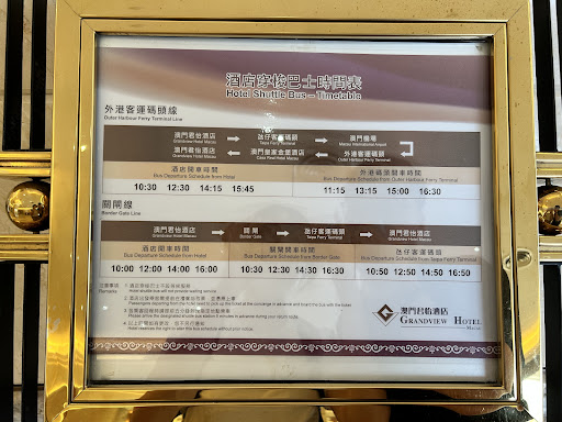 Read moreI stayed at the Grand View Hotel for a week during my maiden trip to Macau. For starters, the hotel staff (especially the doormen and bellboys) were exceptionally friendly and smartly dressed. The reception staff were equally warm and did their best to communicate in English. I found it quite helpful that the English-speaking receptionists wore a Union Jack badge for easy identification by tourists who do not speak Cantonese or Mandarin. ||The hotel was full of surprises throughout. I reckon it is due to their investment in soundproofing. Lol! For instance, I discovered the casino 4 days into my stay. There, you can gamble, enjoy people watching or grab a quick bite. Their dumplings were quite nice. I regret that I never got to explore the pool and gym while I patronized the hotel, though. That said, however, being on the 16th floor during my stay afforded me an unrivalled view of the Coitai Strip which is breathtaking at night; as well as of the magnificent Jockey Club in the hotel's backyard. ||The hotel could do with a better variety at the breakfast buffet, which was rather average. Also, be sure to ask for a non smoking room, as smoking rooms tend to smell rather... smoky. :) Finally, do not touch the mini bar or the fancy bar downstairs! Instead, run across the road to 7 Eleven and buy yourself the same drinks on offer in the mini bar at a fraction of the price. ||Great value for...