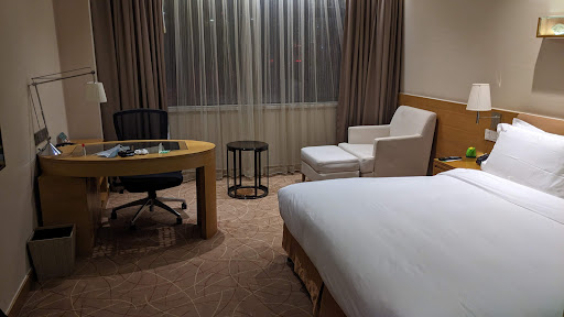 Read moreStayed in a deluxe room booked through an agent. Large hotel, big rooms.||||Each room has tea and coffee making facilities, shampoo, shower gel and conditioner in dispensable bottles attached to the wall, also moisturiser lotion next to sink. Also comes with complimentary tooth brush, tooth paste the usual stuff, slippers and robes, iron and ironing board.||||Cons: the window in our room did not close properly so could be noisy for others, think it was 1620. Unfortunately the temperature is fixed in the rooms so you cannot switch the aircon on or have it lower and so we kept our windows open. luckily it wasn’t extremely hot and we could bear it but the other room we had with the children needed to request a room fan. ||||Breakfast - was good, varied chinese and Western - would say more catered for Chinese taste but still good! still has fried eggs, bacon and baked beans!! ||||staff are friendly and welcoming. ||||Location is close to a supermarket about 5 mins around the corner, there is also a good bbq restaurant there too, walk about 15 mins more and there are tons of eateries close by. We were about 45 mins from high speed main station and about 1 hour to the airport.||||Can’t say how close we were||to any attraction as we had booked a...