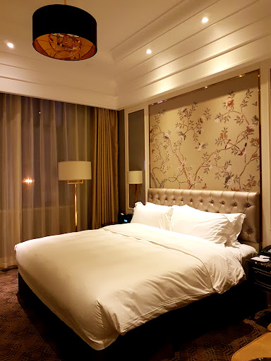 Read moreI stayed here for 1 night for business. The hotel has a beautiful, spacious lobby and has really nice character to it. However, the room did feel a little outdated.||Pros:|Friendly, professional staff. The front desk all spoke adequate English. They also provide transportation to the airport for a fee.|Several restaurants on premise. I ate dinner at the café and it was decent.|Delicious breakfast offered – freshly squeezed juice, omelette station, mix of western and Chinese foods. |Good location – there are 2 bank ATM’s across the street, about 5 minutes walking. They both accept USA ATM cards for those who need cash.|Fast, reliable WIFI|Very comfortable bed|Outlets in room are compatible with 2-prong USA plugs||Cons:|The bathroom has an automatic, motion sensor light. Problem is, it goes off after a couple of minutes. It was difficult taking a shower and having the light turn off constantly.|The bathtub has a shower head but nowhere for it to be hung from. You will need to hold the shower head...