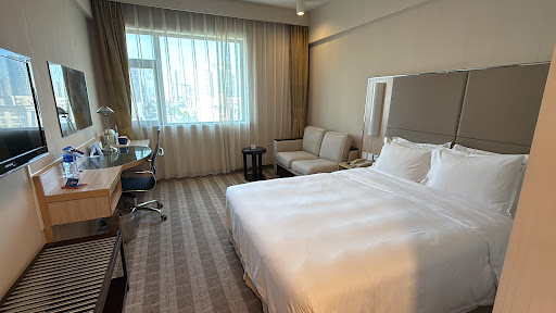 Read moreFirst of all, I found that this hotel has a strange set-up (but in no way affected its quality). It was connected at the back to another hotel, and was located adjacent to and in the same complex as a Crowne Plaze and a Holiday Inn.. It seemed that long ago, this was a hotel complex owned by the state. Later on, it was divided up into different plots for different hotels.||||Location||The hotel was actually located right between the Zhengzhou train station and Zhengzhou East train station. Zhengzhou station was located in the old city center, while the Zhengzhou East station was located in a newly developed modern office-residential area located in the east.||||There were bus stops right in front of and near to the hotel. Taking a bus to the Zhengzhou East station and the Zhengzhou Museum was a breeze. Bus fares in Zhengzhou were only RMB1.00, and very efficient (they have dedicated bus lanes). I travelled to and fro the Zhengzhou East station using the bus without any problem at all.||||Next to the hotel was a park, and also a Dennis departmental store after the park.||||Room||Clean and big room, Comfortable stay and good sleep. Really nothing to complain.||||Breakfast||Stayed for 2 nights. However, the first morning I had to take breakfast at 6 am (breakfast started at 6 am) but the food was not fully serived yet and I didn't have too much time to enjoy the food.||||For the 2nd morning, I had to leave at 4.45 am. So again, there was no chance for me to savour it again.||||But from the short period I had breakfast on the first morning, the food was great.||||Will stay again...