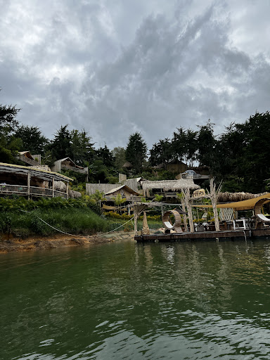 One of the worst and one of the nicest hotels i have ever stayed at for the following reasons: undertrained staff - when we have arrived (by car) the main entrance was locked and we had to wait in front of the hotel for 10 minutes, when someone finally came it was a very tiny woman, thus, no one there to help us with our luggage. At the reception no one spoke english, they checked us in and forgot, we waited again for 20 minutes, and we were only taken to our room when i finally found the owner of the place and asked what was going on. Arrival to the room: we asked explicitly, what we need to know, the person said nothing and left. Thus, we had to prepare our own hut tub (uncover, set-up, find bath robes in an adjacent relaxation room, as there were non in the room, turn our own heating on and figure out by ourselves how room service works at the place) People were in general rude, not friendly, no proactive attitude. -services and atmosphere- Hotel transfer: we received no information about transfer ahead of our arrival, and on departure we were offered a few strange choices at high costs 80k pesos to get to Guatape in 10 minutes. Room service took about 1h to arrive with some stale nachos. When we ordered water, even though it was hotel branded it was not free (i would expect free water at EUR 300USD/night) -music- The place has a pontoon with loud music, which can be heard from all of the villas (which are tents basically). I did not mind the loudness but the quality of the music (@hotel owners: please look some playlists of nice chill out music: all luxury places have them: Scorpios and Nammos Mikonos, etc.) The music which was playing is general disco nonsense.