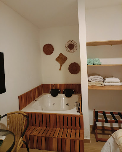 Boutique property with great resort-style pool area, vibrant flowers, warm personalized service and a good location in town. There is also a jacuzzi and sauna, although the former was not any warmer than the pool throughout our stay. Our room (3 beds) were fine but more basic than expected for the price, so I’d recommend upgrading to the “deluxe” room; ours had exposed cords, a backward doorknob, a shower door that required a binder clip to stay shut and no windows, though the AC was great. The biggest bummer of the property was the food. Our lunch (33k) came with a comically small portion of overcooked, bland chicken and some wilted lettuce. Breakfast was also disappointing, served with an airplane croissant and processed packets of jam. The property requires 50% pre-payment, and the remaining balance can be settled via transferencia or by manually entering card details...