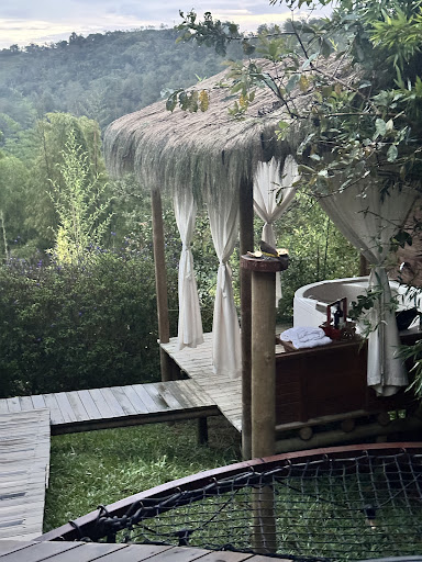 Las intalaciones: Mira las fotos y podras ver la zona de comidas, la zona de fogatas, balcon para avistamiento de aves (yo no vi mucho pero esta rico), la zona de las habitaciones (que es bastante privada) y la reception (donde encontraras mecato, bebidas...