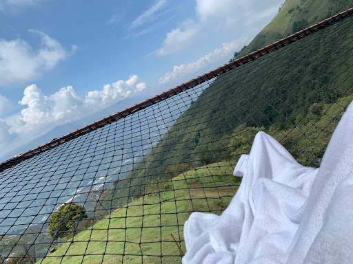 Lo bueno: Una vista espectacular. La ubicación casi que coronando la montaña ofrece un panorama esplendoroso y cautivador. La malla catamarán te ofrece una experiencia al aire libre de paz y libertad, los espacios limpios y organizados. Agua caliente para la ducha. Comida muy rica en sazón y en cantidad saciante. Tour en cuatrimoto aventurero y que le da un toque adicional a la experiencia de acampar. Podría ser un trayecto con una vuelta un poco más grande, ya que es una experiencia que tranquilamente lo paga todo por el ecosistema que hay arriba del glamping. Económico por los servicios y cosas incluidas dentro del paquete, dependiendo de cuál sea. Aceptable atención. Podría ser mejor en cuanto a claridad de la información por wapp, estar atentos a las diferentes necesidades en todo momento del cliente e inconvenientes que surjan sobre la marcha. Cama cómoda, clima dentro de la burbuja fría en su mayoría, calor solo en la mañana. Bafle con sonido Bluetooth al interior de la burbuja.