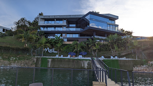 Came across this hotel on a price comparison website, and had originally wantwd to stay here for 3 nights, however, commitments in Medelin kept us nearer to the big cit||||Getting there was a trek, I had thought that due to it looking modern there'd be a modern road to get there, nope! Single track, sometimes unmade roads led us to the hotel, a modern glass and steel affair beside the lake [reservoir]. ||Fabulous location, a proper get away from it all romantic retreat.||||Booked a garden room by credit card and on arrival was offered an upgrade paid for in cash, always dodgy that, but when that is roughly £20GBP... just go with the flow. So, got a room with balcony overlooking the lake with glass walls to 2 aspects. Not the biggest room of the trip but certainly the most spectacular view.||||Hotel had a neat smallish swimming pool with an infinity type edge to one side, fire pit, and a working steam room, which we thoroughly enjoyed.||||We'd had a large lunch so didn't partake in an evening meal here, which was shame as it looked like they served "proper" chips, like mother used to make.||||Had a Pina colada which was possibly the thickest we've ever tried, very nice.||||Excellent staff, but serving hours limited to 8pm!!||||OK breakfast.||||Oh how I wish we could have stayed here a few days, as it also offered boat trips...