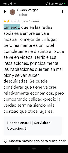 Read morePor la amabilidad y buena disposición de quienes laboran en el lugar, por eso me pareció buena la estadía, y volvería con la esperanza de que hayan corregido , mejorado , el hotel bien ubicado cerca al mar, central. Costo justo para lo que te ofrece. Habitación como en la foto. ( Camarote chirriando, desajustado). Cumplidos en aseo en los cuartos, pero noté, falta puntual de cambio de toallas limpias, te doblan las no muy sucias y te las dejan con las limpias.