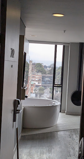 Read moreLet’s start : We stayed the first night on the 4th floor facing the road and it was the worst night ever ., the bed was extremely small for Two people., the noise of the road was insane and in the morning there is an alarm from the garage that is constantly making noises ., to be able to breathe in the room you have to call the front desk and request air conditioning, good luck with that because they hardly ever answer down in the front desk . The ceiling had a horrible stain between grease , and finger prints and the next morning we requested to move to another room, I wish I moved to another hotel but we booked thru Expedia so we won’t get any money back ., The rest of the days housekeeping showed up around 5:30 pm , but what made me extremely upset was today a week after when checking out I was being charged for “ making a stain in one of the towels “ , also being accused of “ maybe cleaning my face with the towel “. I have never been so upset before . The quality of the towels is so poor that pretty much hurts to used it and on top of that I was charged for making a “stain” , I requested a picture and obviously never got it . The hotel has a nice lobby and they invest a lot trying to have a unique look , but no costumer service at all . The staff is not prepare and it is very stressful to even try to print a document . There is not a business center . Now I fell much better after taking my time and leave this review . Bogota has many more hotels where people can have quiet and peaceful nights . I definitely won’t recommend...