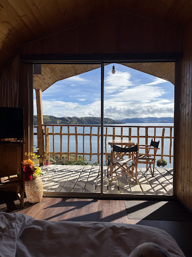 Read moreLa cabaña es preciosa y la vista al lago es espectacular. Hace mucho frío y quizás podrían poner una cobija más abrigadora. No hay calefacción pero si hay agua caliente. Hay zona de BBQ en cada cabaña y hay una jarra hervidora para hacerse café o infusiones todo el tiempo. El desayuno es rico y la cordialidad de Ana María es increíble. La leña para el asado tiene un costo, si no sabes prender la leña Ana María te ayuda. Cerca queda Aquitania y en el restaurante Pueblito Viejo puedes probar la crema de cebolla pues son cultivadores del 80% del país. La trucha es deliciosa en todas sus preparaciones. Fuera del alojamiento puedes contratar motosky o lancha. La vista al lago al despertar es hermosa y los paisajes son...
