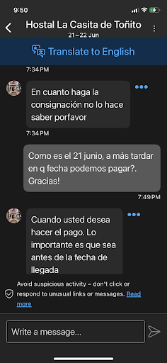 La verdad un lugar en el que no se puede confiar al hacer la reserva, tuve una mala experiencia con ellos. Realicé una reserva vía booking que siempre me ha ido bien incluso fuera del país, la forma de pago se concreta con el hostel, donde me dicen que debo realizar el pago del 50% antes de la fecha de viaje, y ellos teniendo el chat de booking y mi whatsapp no me escriben o me avisan de algún cambio o me alertan de realizar el pago con más antelación por la temporada, en fin, era solo avisarme. Pues recibo el aviso de booking que cancelaron la reserva la cual realicé con 1 mes y medio de antelación, según ellos porque no realicé el pago del 50% cuando yo todavía tenía tiempo suficiente para realizarlo (cerca de 20 días), me pidieron disculpas de mil formas pero sus disculpas no arreglan nada, y da mucha inseguridad hacer planes con antelación en este lugar y te las cancelen sin previo aviso. Adjunto fotos del chat del 11 de mayo y mi reservación era para el 21 junio, donde me dejan claro que puedo hacer el pago antes del viaje, no pusieron...