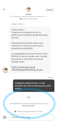 Read moreMe dejaron en la calle a media noche, realicé una reservación por Airbnb e informe que llegaba a la media noche, pague, recibí un mensaje de la anfitriona diciendo que me enviaría las instrucciones para entrar, y cuando llegue a las 11:30 PM, no respondió al teléfono, no mando instrucciones y cancelo la reservación, me tocó buscar otro sitio en donde hospedarme, Como cancelo la reservación no fue posible dejar una reseña en Airbnb....