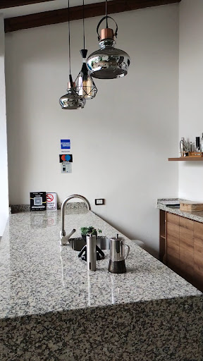 Nos atendieron dos maravillosas mujeres que me enseñaron el lugar y me me hicieron sentir como en casa. Pasamos hasta el fondo y encontramos una cocina hermosa, amplia, moderna y contemporánea, elegantemente combinada con algunos elementos recuperados de la arquitectura del siglo pasado, fue una muy bonita experiencia, porque me hizo recordar los mosaicos portugueses y justo al final de la casa, otro gran jardín con plantas y palmeras, igualmente bonito y tranquilo.