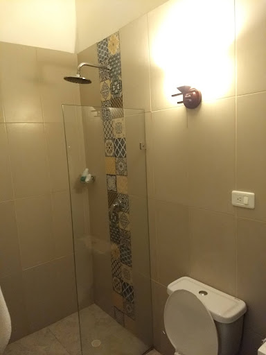 Our bathroom also was not clean. There was the wrapper of a toothpaste that was on the floor for many days, and there was someone’s inter dental tooth pick behind the sink that the staff didn’t notice and still left it there. The shower was also not the cleanest, and the toilet was leaking. We put one of the hand towels down as it already soaked the floor towel. When we came back later in the day to find that they made up the bed and repositioned the hand towel on the ground to go on top of our cosmetics, we were a bit disgusted. Oh also, the door is one of those cheap hollowed out repurposed wood that slides. This means the bathroom is never completely closed and you cannot seclude it from the room. The door is basically next to the head of the bed, so do not expect privacy when here. Also our plastic toilet seat was broken, so if you didn’t sit on it a berating way, you would fall off. Also the space between the toilet and the sink was not so much so I kept hitting my knees on the thing holding up the sink.