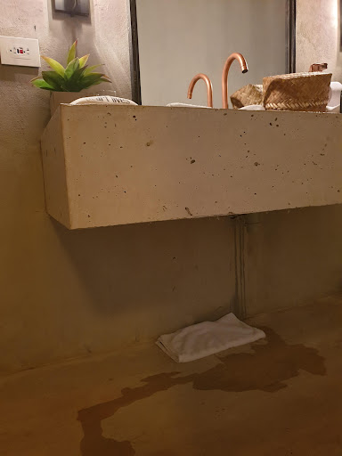 We stayed in 109, and soon after we checked in, water started leaking from the bottom of our bathroom sink. The leak would start about 5 mins after we used the faucet, and the first time it happened, a lot of water pooled quickly across our bathroom floor and almost got to our luggages and the nice shoes we unpacked next to the standing closet, which is by the bathroom. (The room is open concept, with a partial wall separating the bed and the bath area. The concept is cool in photos, but in reality impractical.) The front desk sent someone right away to take a look and clean the water, but we had to wait for the handyman to come back with a missing part to fix the leak.