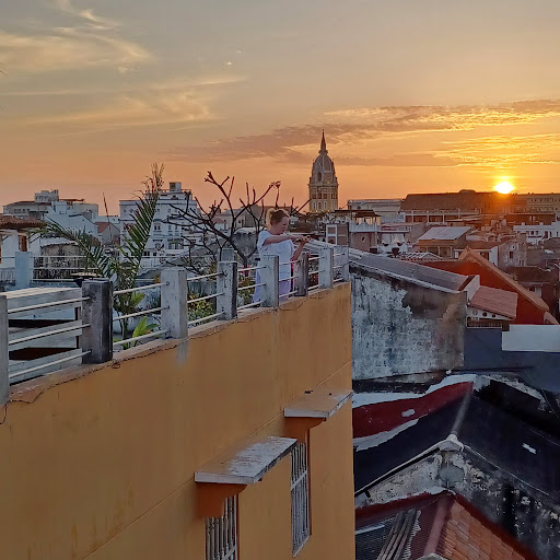 Read moreWe had a pleasant stay of 2 nights in a private room off an apartment in this hotel. ||The hotel is unassuming and a bit difficult to find. Google maps seems to have two locations listed, and the actual location is on Carrera 9 just past the intersection with Calle 36 and across from an Éxito (not the department store, which is a few blocks away). I just showed my taxi driver the location on my phone because even using the official street name didn’t help. ||Once you find it, it’s very easy to get anywhere in the Old City. The plaza de San Diego 4 blocks away has a particularly fun vibe at night. Having the Éxito across the street is also very convenient (though the lines are seemingly always long). ||The hotel contains apartments with common areas and kitchenettes, a shared bathroom, and 3 private bedrooms. We didn’t really understand this before, but it was fine. I think another room|in our apartment was occupied, but we never saw anyone. Only the bedrooms have AC (it works very well in there) so aside from using the WiFi (which was weak in the room), we didn’t use the common area. There is a common fridge, which we were excited about, but it wasn’t working. ||The staff was friendly and responsive. The bed only had one sheet when we arrived, but they promptly brought an additional blanket upon request. ||Breakfast on the 5th floor terrace was included. One day it was an arepa with toast and the next it was scrambled eggs. It also included fresh fruit, coffee, and juice. This was great and very convenient. ||The door closes around 9 pm and then you need to ring a bell to get in. We appreciated this layer of security. The rooms also had a locking closet so we felt comfortable leaving valuables behind. ||Overall, this was a comfortable and fairly affordable stay in a hotel/hostal hybrid. My one warning would be that messy apartment-mates could make the shared bathroom situation...