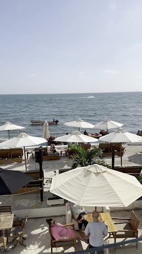 The beach club has a laid-back atmosphere reminiscent of the baleric (Ibiza) beach scene, with DJs playing chilled house music in the background. They do need to do better with their shade, as the ones FIXED to the loungers that are not under their larger shade, offer ZERO shade where they are fixed, based on the angle of the sun ALL day.